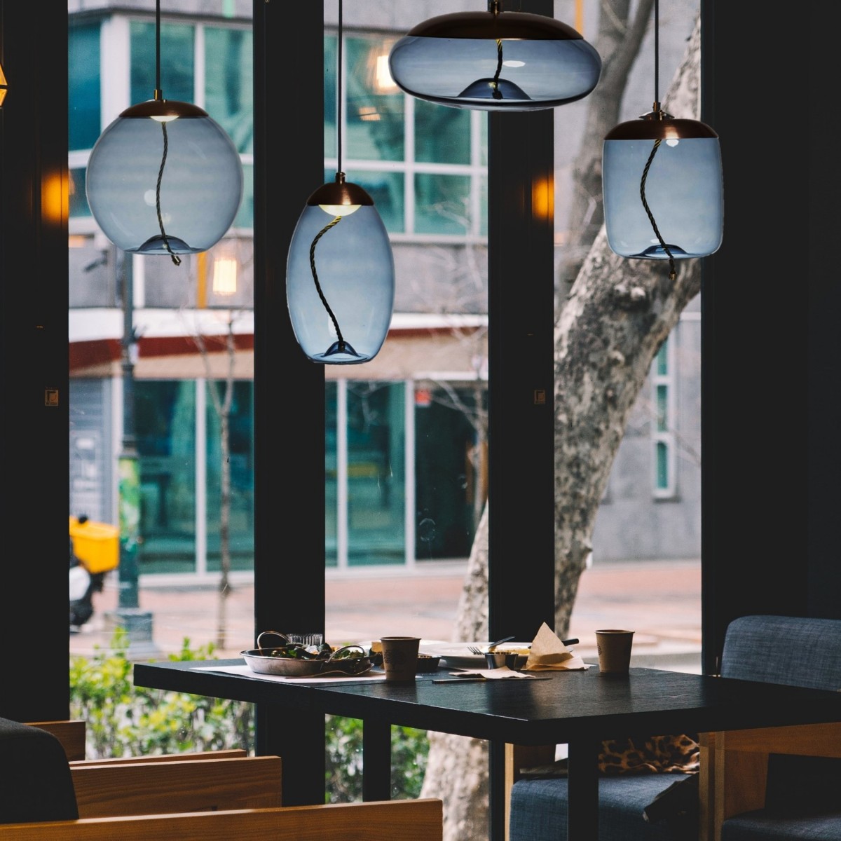 Φωτιστικό κρεμαστό μονόφωτο με γυαλί. Διαθέσιμο σε φιμέ χρώμα ή σε γαλάζιο χρώμα φινίρισμα. Μια σύνθεση 2 ή περισσότερων μονόφωτων μπορεί να γίνει ένα πολύ μοντέρνο πολύφωτο. Τεχνικά χαρακτηριστικά Τύπος Λαμπτήρα: CHIP LED, 7Watt, 3000K Διαστάσεις: Διάμετρος: 16cm, Ύψος: 29cm Υλικό: Χάλυβας και γυαλί