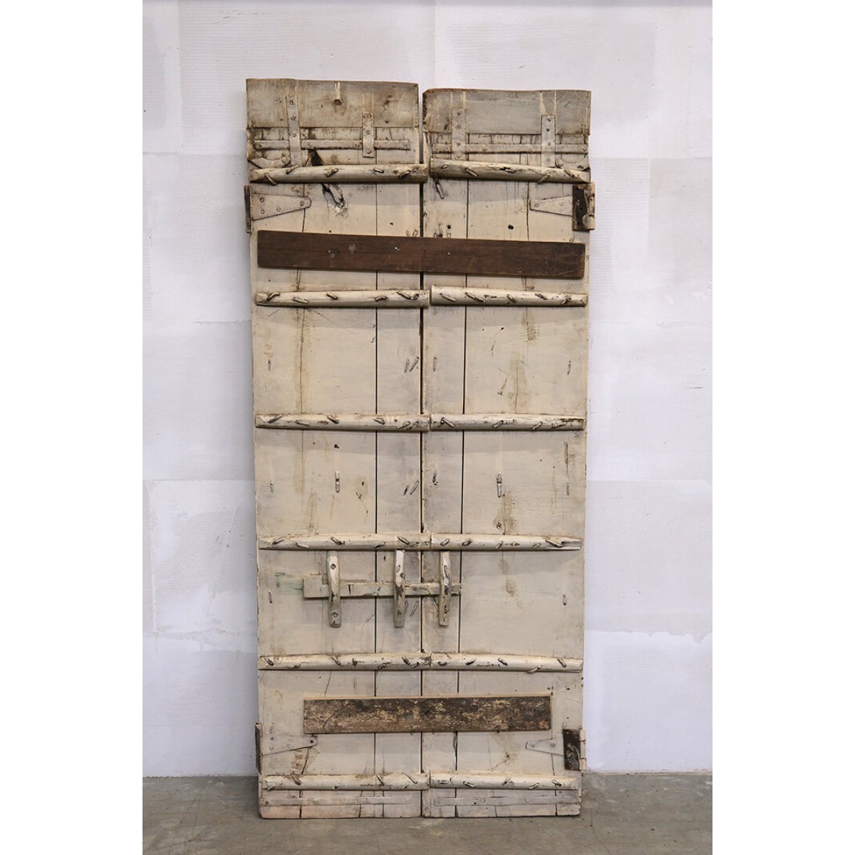Διακοσμητική vintage διπλή πόρτα από ξύλο και μέταλλο σε μπλε και κρεμ απόχρωση 80x8x178 εκ
