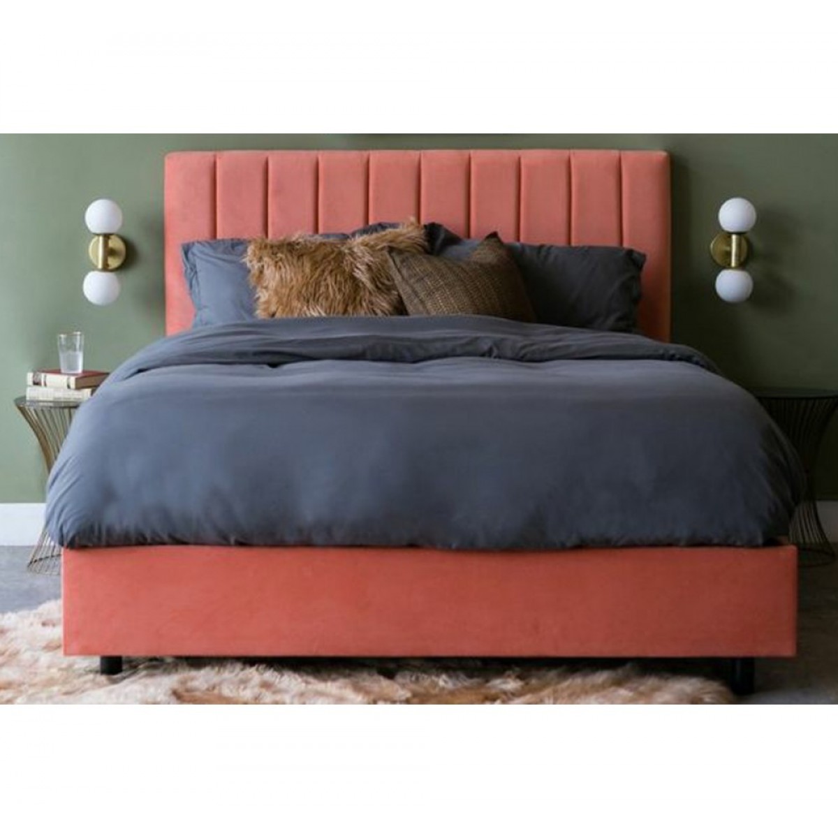 Διπλό, αναπαυτικό, ντυμένο κρεβάτι με πλούσια επένδυση στο κεφαλάρι. Διατίθεται σε ποικιλία χρωμάτων και διαστάσεων.