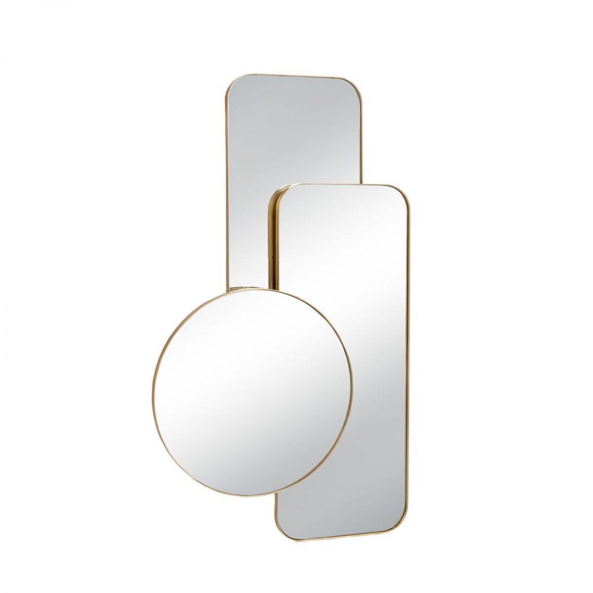 Μεταλλικός τριπλός επιτοίχιος καθρέπτης με πλαίσιο σε χρυσό χρώμα 67x9x115 εκ.
