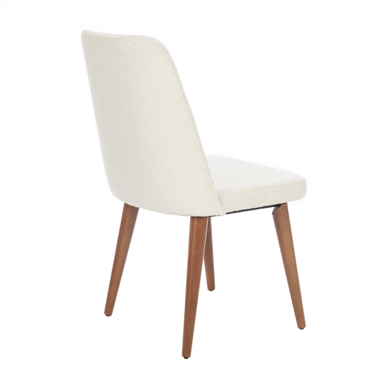 Milano καρέκλα με ξύλινο καφέ σκελετό και λευκό μπουκλέ ύφασμα 48x60x90 εκ