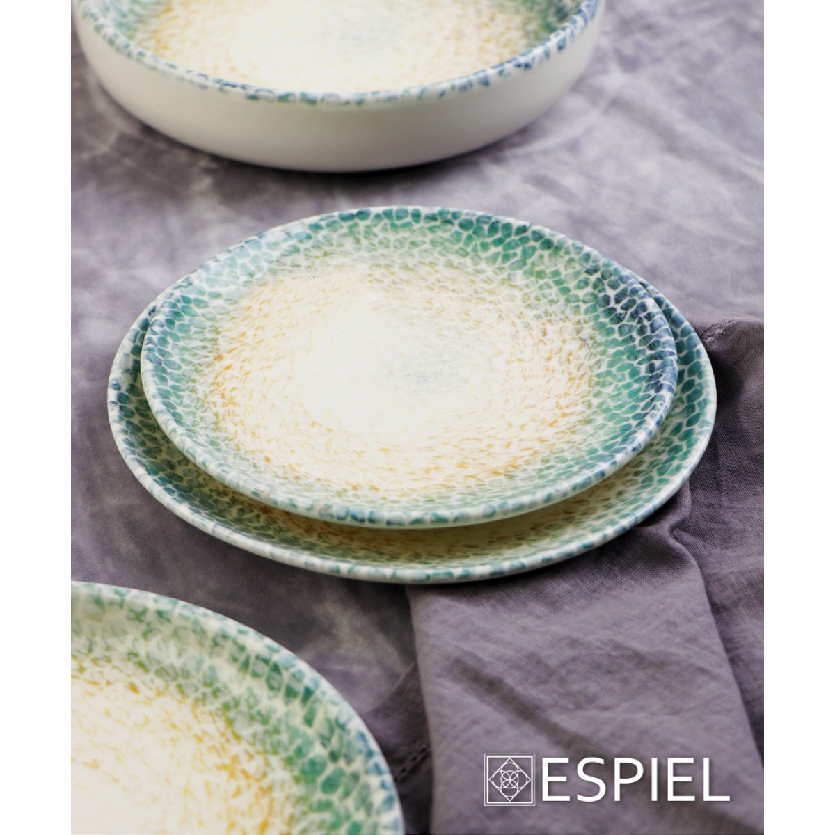 Πιάτο ρηχό Lizard σε τόνους τιρκουάζ και πορτοκαλί από πορσελάνη σετ των έξι 24 εκ