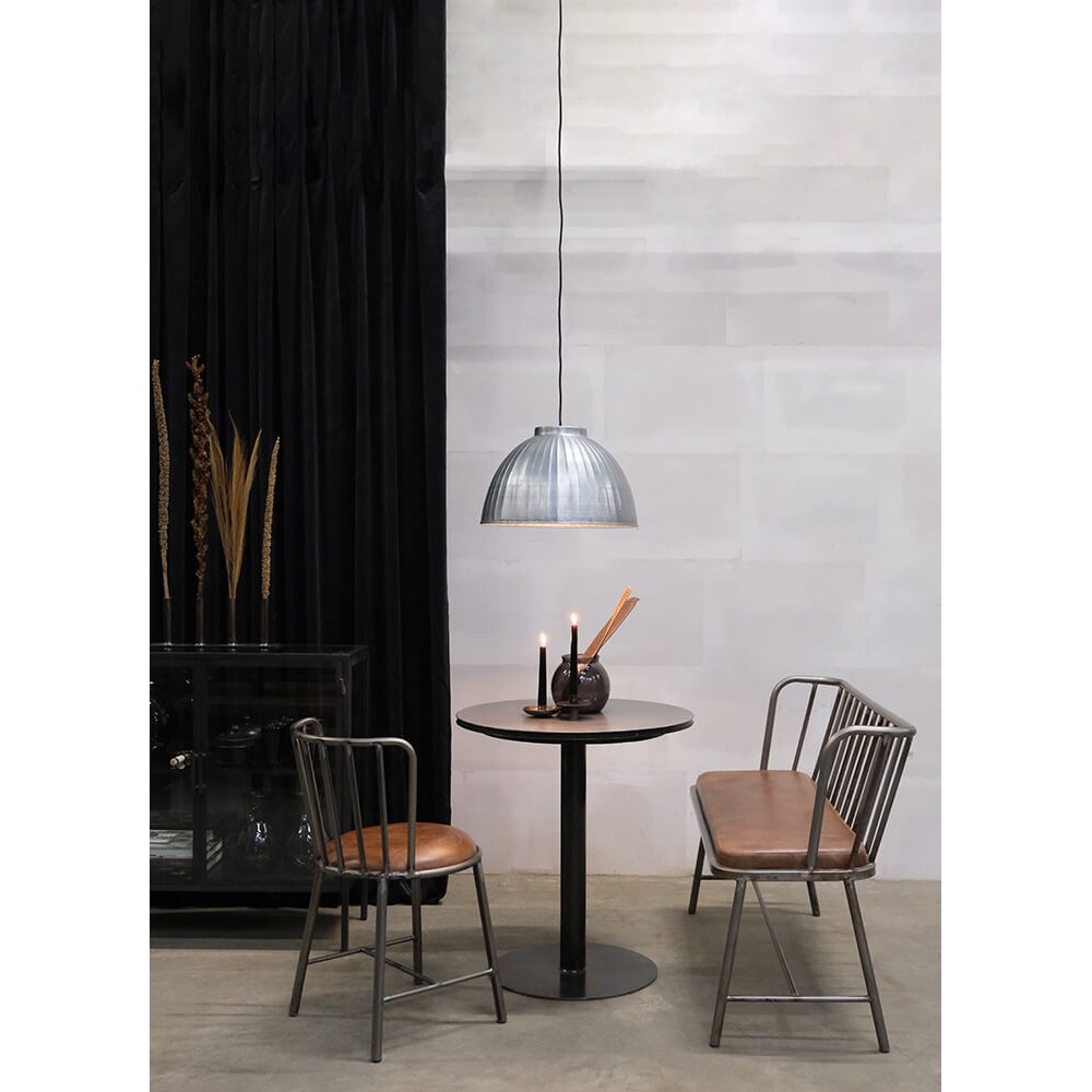 Ένα ρουστίκ τραπέζι φαγητού με μεταλλική βάση και επιφάνεια τραπεζιού από μαύρο βαμμένο ξύλο μάνγκο, το οποίο δίνει στη διακόσμησή σας, μια αίσθηση μο..